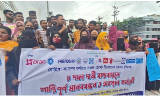 রোহিঙ্গা ক্যাম্প থেকে চাকরিচ্যুত স্থানীয় শিক্ষকদের দ্বিতীয় দিনের অবস্থান ও বিক্ষোভ কর্মসূচী