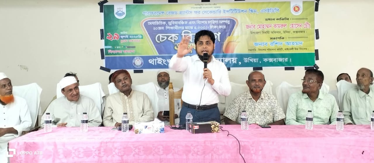 ২৯ জুলাই (মঙ্গলবার) সকাল ১১টায় উপজেলার থাইংখালী উচ্চ বিদ্যালয়ের অডিটোরিয়ামে আয়োজিত অনুষ্ঠানে বিদ্যালয় পরিচালনা কমিটির সভাপতি রশিদ আহমদ'র সভাপতিত্বে প্রধান অতিথি ছিলেন উখিয়া উপজেলা নির্বাহী অফিসার মোহাম্মদ কামরুল হোসেন চৌধুরী।