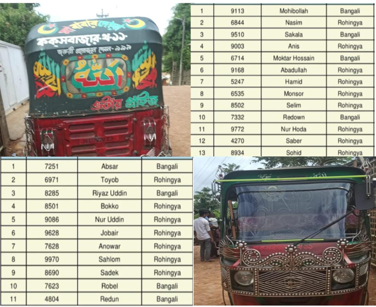 ক্যাম্প-১১, ১২ ও ১৮ নং ক্যাম্পে আরআরআরসি থেকে অনুমোদিত সিএনজি রয়েছে মাত্র ১১টি। কিন্তু বাস্তবে পুলিশ ম্যানেজ করে প্রতি মাসে ১৫,০০০–৩৫,০০০ টাকা উৎকোচ দিয়ে ২৮ থেকে ২৯টি সিএনজি চলাচল করছে।এদের মধ্যে রোহিঙ্গা ড্রাইভার এবং রোহিঙ্গা মালিকানাধীন সিএনজি রয়েছে উল্লেখযোগ্য সংখ্যায়। ক্যাম্প-১২ এর বাসিন্দা রোহিঙ্গা আলম ও ইয়াছিন—এই দুই জনের মালিকানাধীন ৯টি সিএনজি নিয়মিত চলছে। অভিযোগ রয়েছে, আলম বাঙ্গালী মেয়েকে বিয়ে করে অবৈধভাবে স্থানীয় পরিচয়ে বসবাস করলেও তার কোনো জাতীয় পরিচয়পত্র সন্ধান পাওয়া যায়নি।